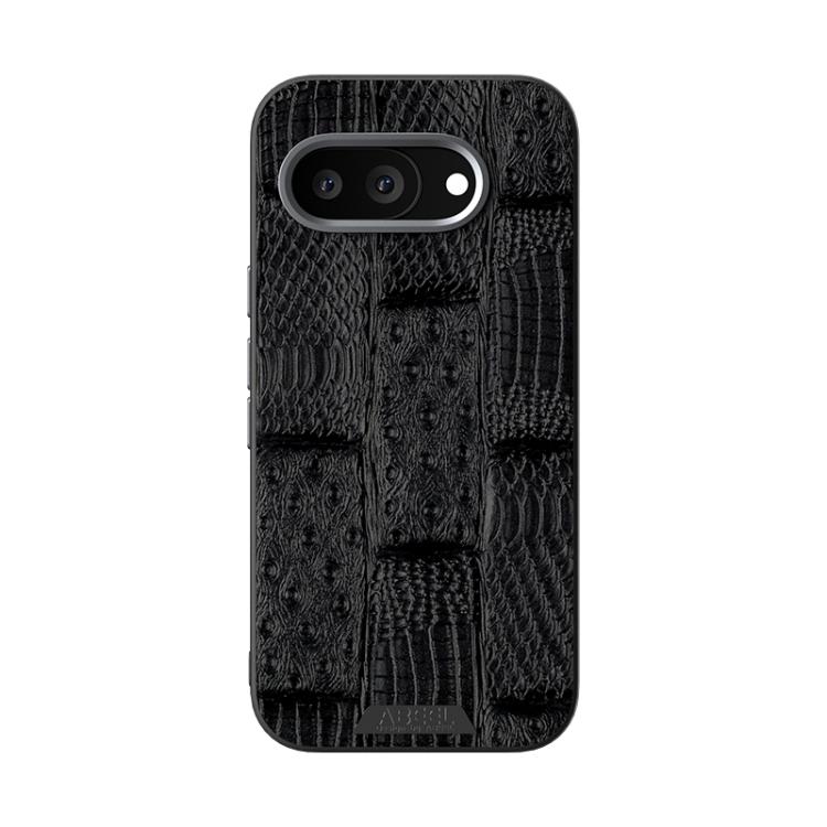 Funda de Cuero Genuino con Micrograbado Magsafe 6D Abeel Beast Pattern para Google Pixel 9A (Negro)