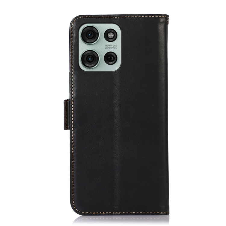 Funda de Cuero Genuino Crazy Horse Magnética para Motorola Moto G75 5G (Negro)