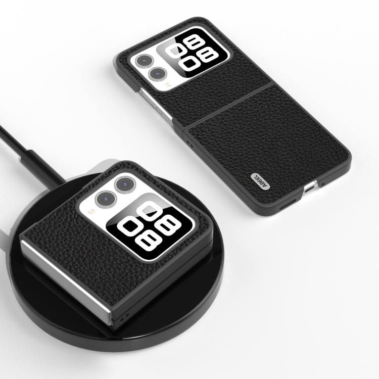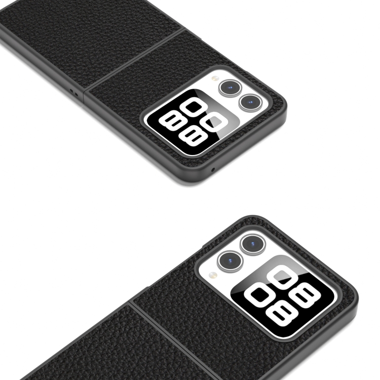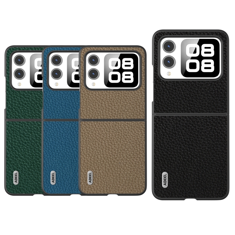 Funda de Cuero Genuino con Textura de Lichi para Huawei Nova Flip Abeel (Negro)