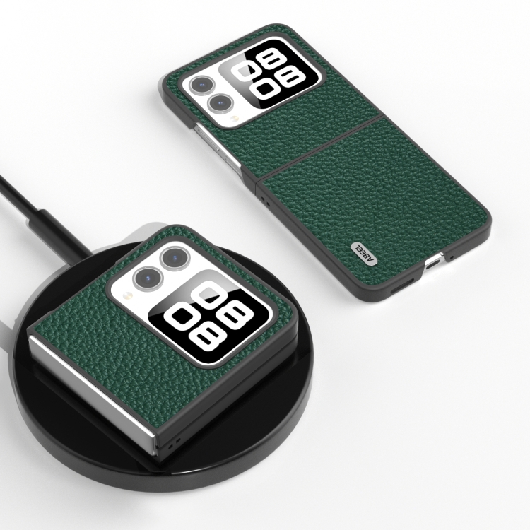 Funda de Cuero Genuino con Textura de Lichi para Huawei Nova Flip Abeel (Verde)