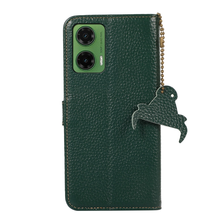 Funda de Cuero Genuino con Textura de Lichi Rfid para Motorola Moto G35 (Verde)