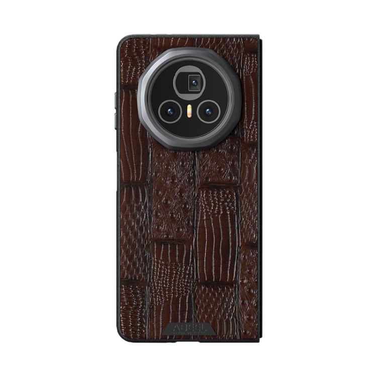 Funda de Cuero Genuino Magsafe para Honor Magic V3 con Micrograbado 6D Abeel Beast Pattern (Marrón)