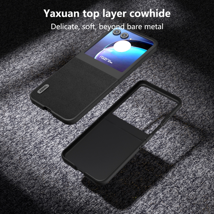 Funda de Cuero Genuino Abeel Serie Luolai para Motorola Razr 50 (Negra)