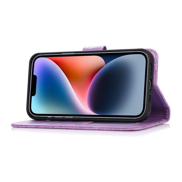 Funda de Cuero Horizontal con Girasol En Relieve para iPhone 13 Pro Skin Feel (Púrpura)