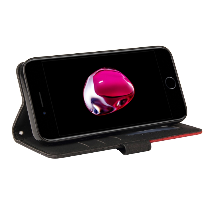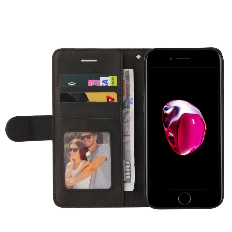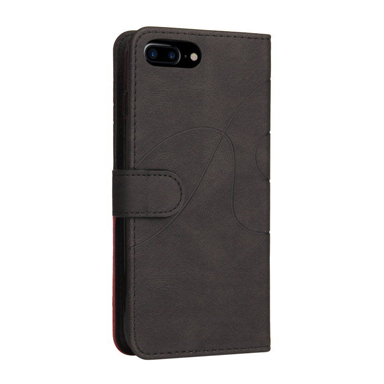 Funda de Cuero Horizontal Doble Color con Soporte y Ranuras para Tarjetas para iPhone 8 Plus / 7 Plus (Negro)