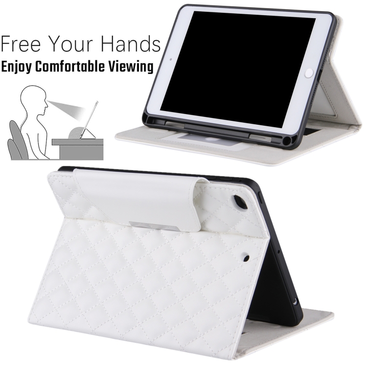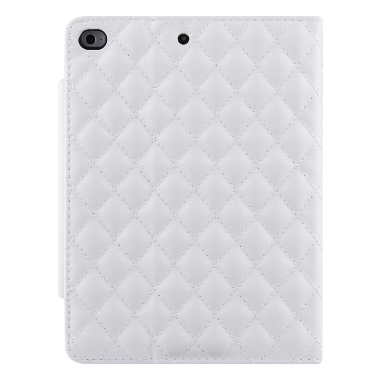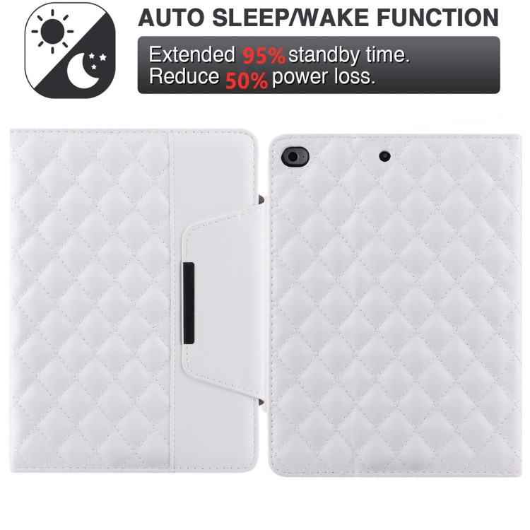 Funda de Cuero Horizontal Patrón a Cuadros para iPad Mini 5/4 con Soporte y Tragamonedas (Blanco)