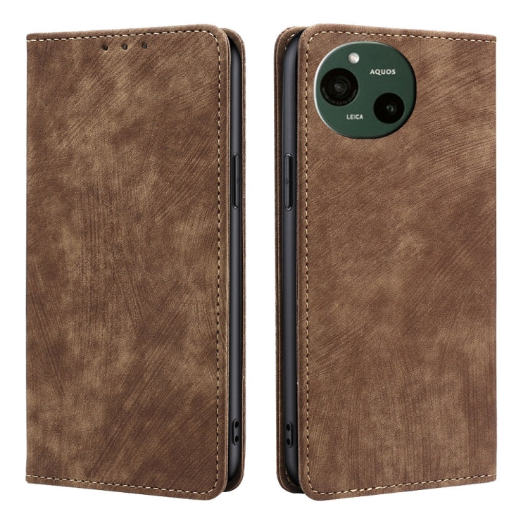 Funda de Cuero Magnética Sharp Aquos R9 con Cepillo Antirrobo RFID (Marrón)