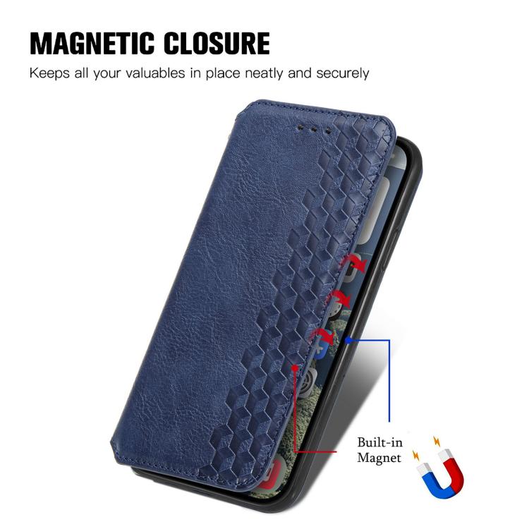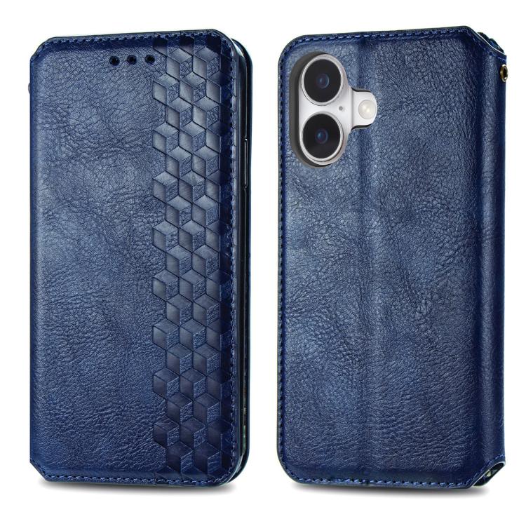 Funda de cuero magnética con diseño de cuadrícula cúbica para iPhone 17 (azul)