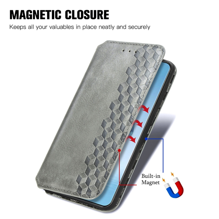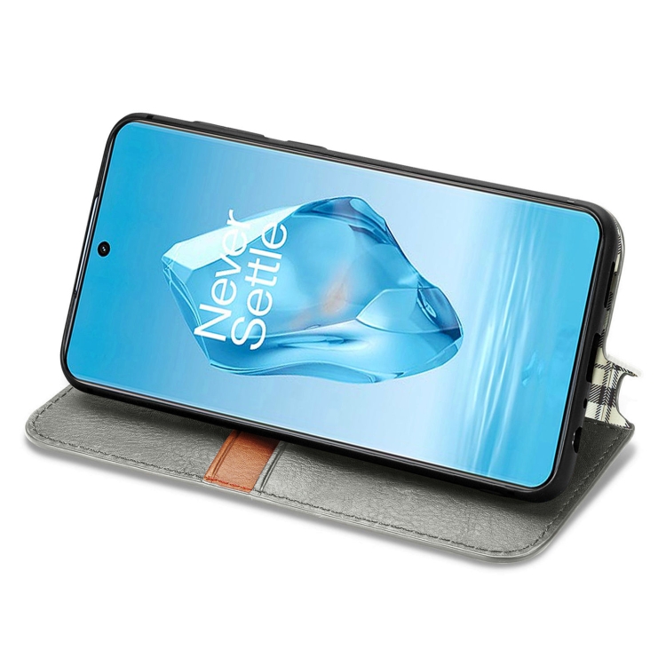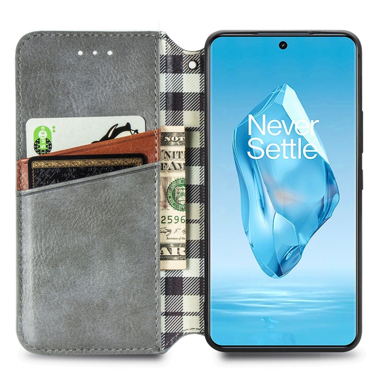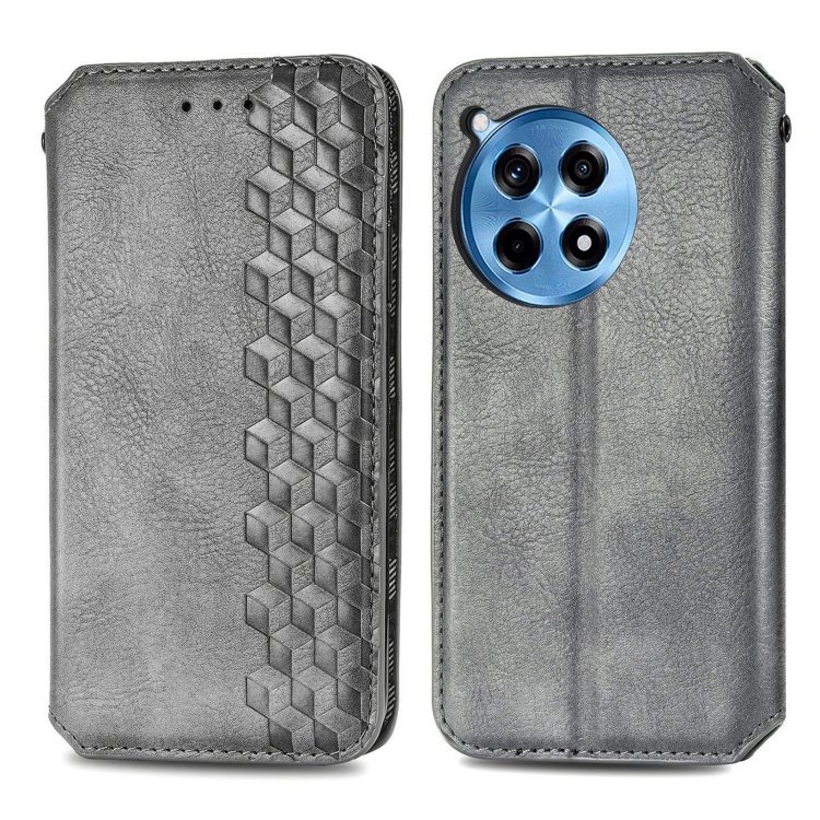 Funda de Cuero Magnética OnePlus Ace 3 Pro Diseño Cuadrícula Cúbica (Gris)