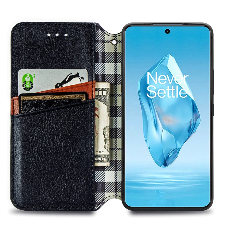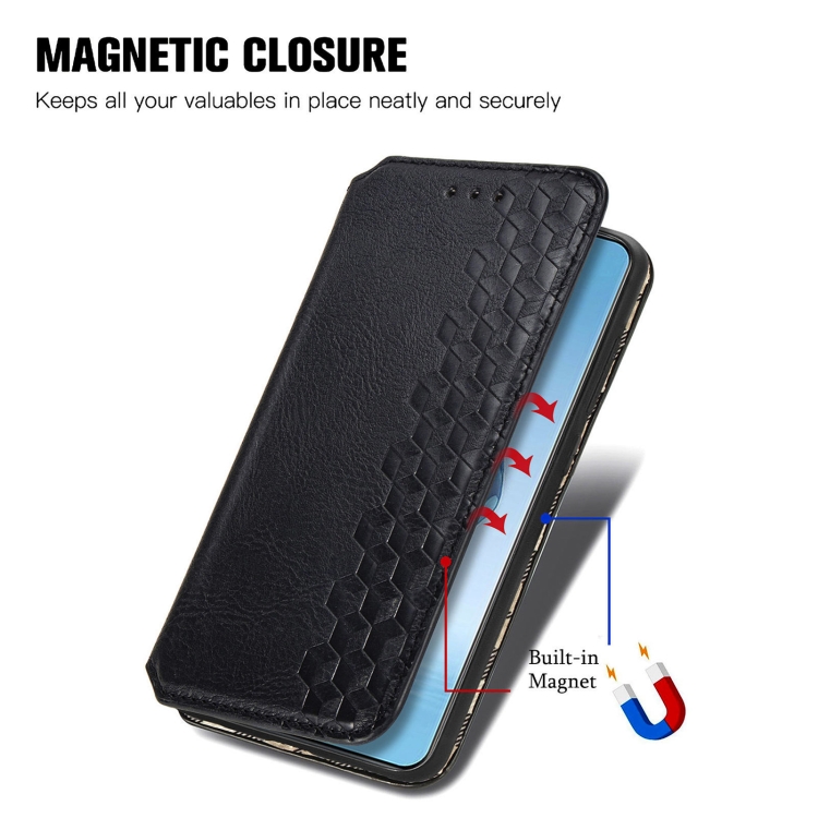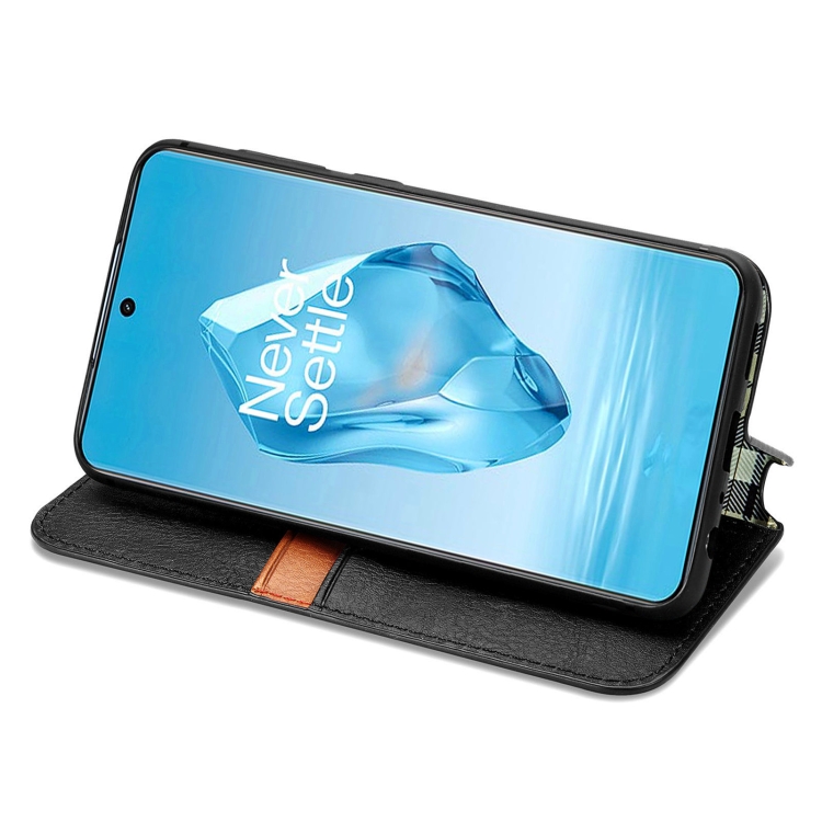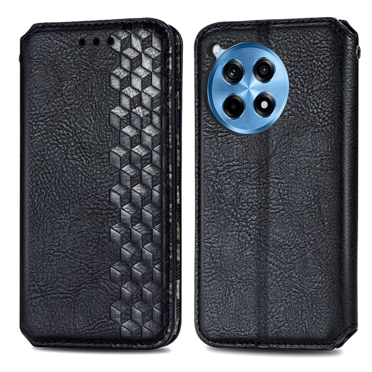 Funda de Cuero Magnética OnePlus Ace 3 Pro Diseño Cuadrícula Cúbica (Negra)