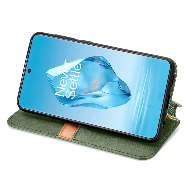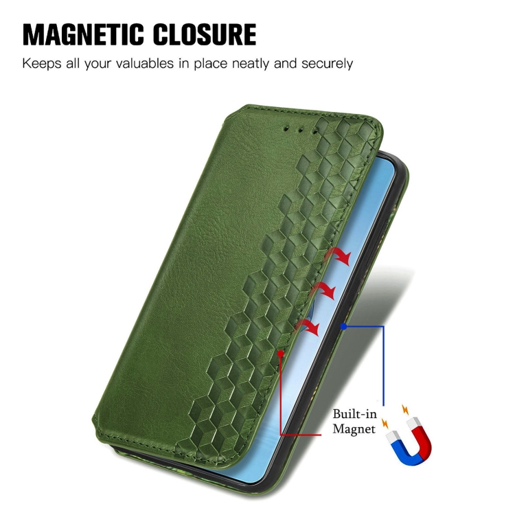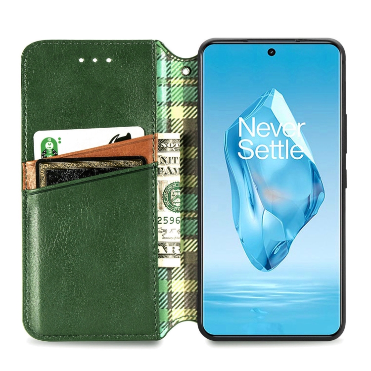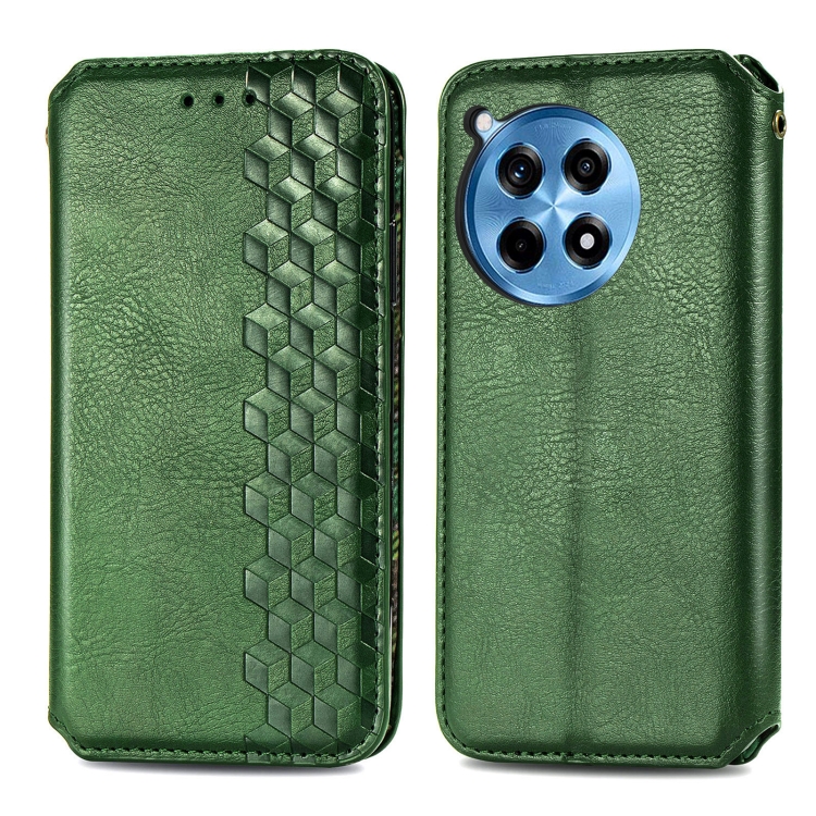 Funda de Cuero Magnética OnePlus Ace 3 Pro Diseño Cuadrícula Cúbica (Verde)