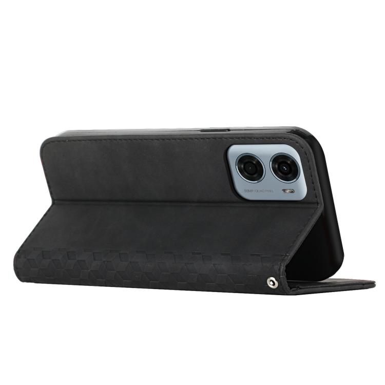 Funda de Cuero Magnética con Diseño de Diamante para Motorola Moto G05 (Negra)