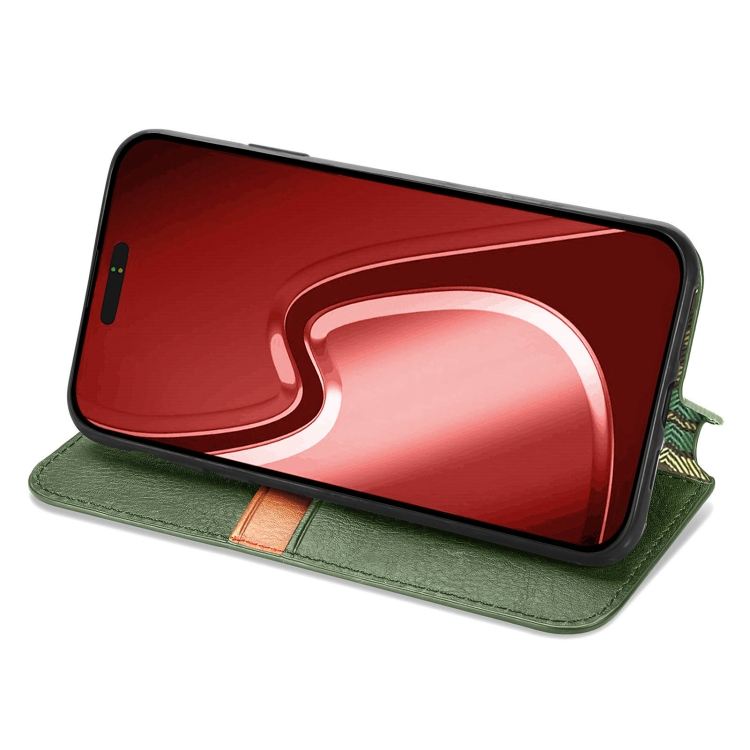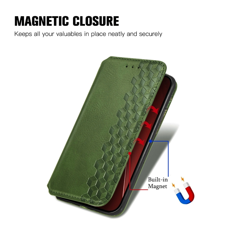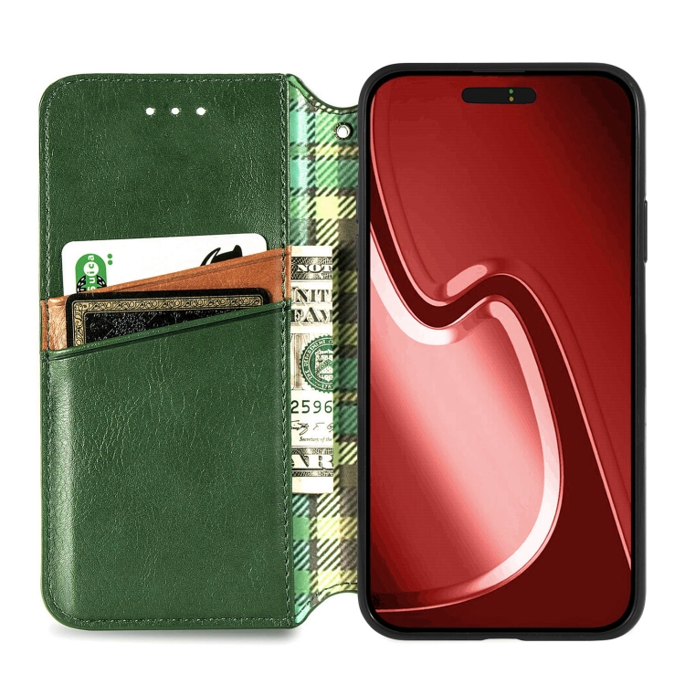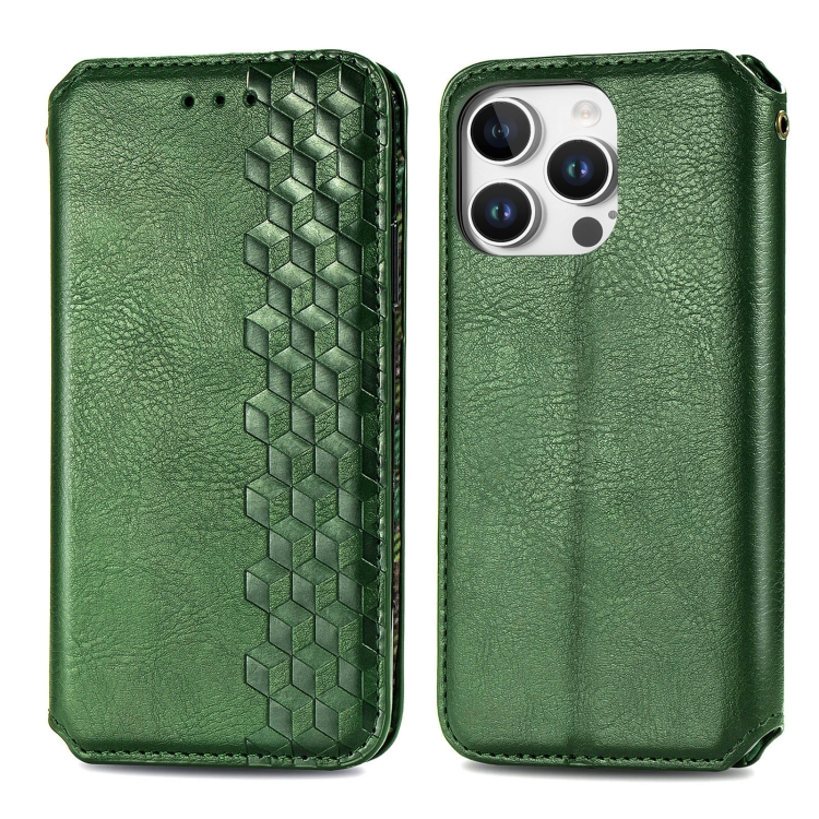 Funda de Cuero Magnética con Rejilla Cúbica Prensada para iPhone 16 Pro (Verde)
