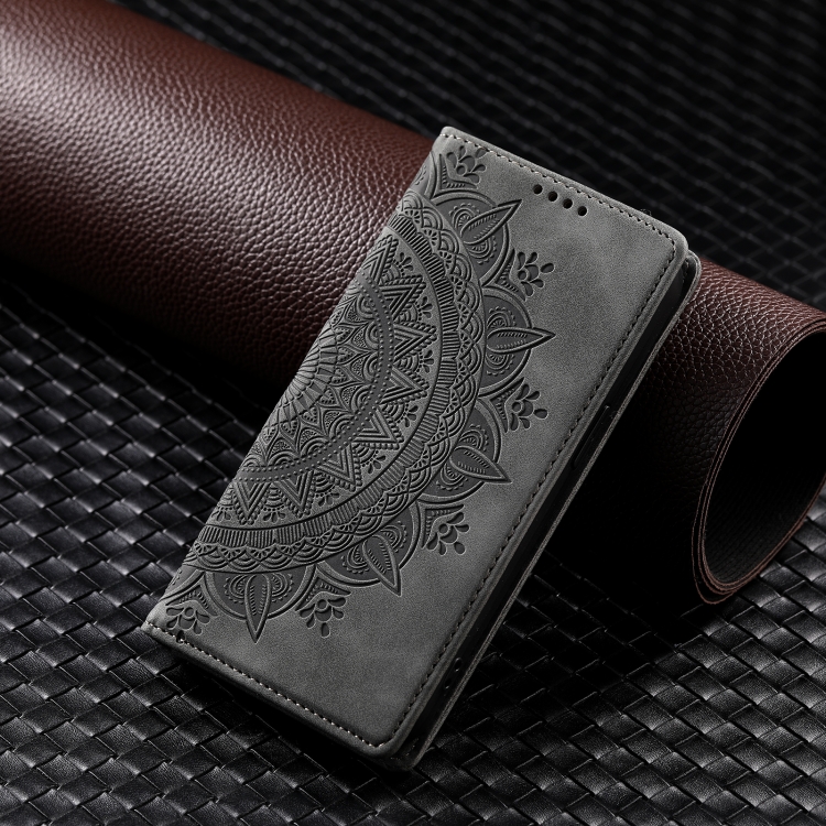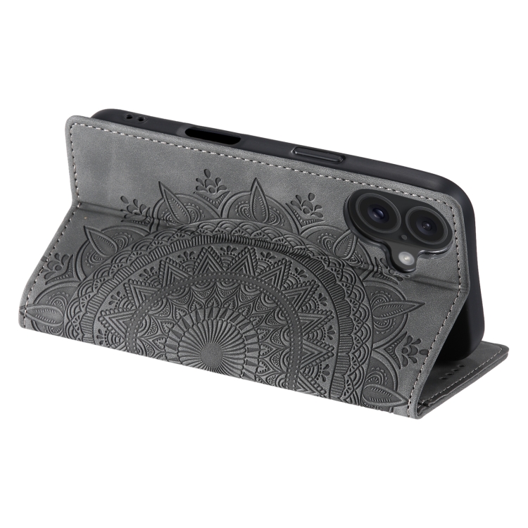 Funda de Cuero Magnética con Relieve Totem para iPhone 16 Plus (Gris)
