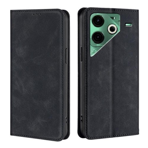 Funda de Cuero Magnética con Tacto de Piel para Tecno Pova 6 Neo 4G (Negra)