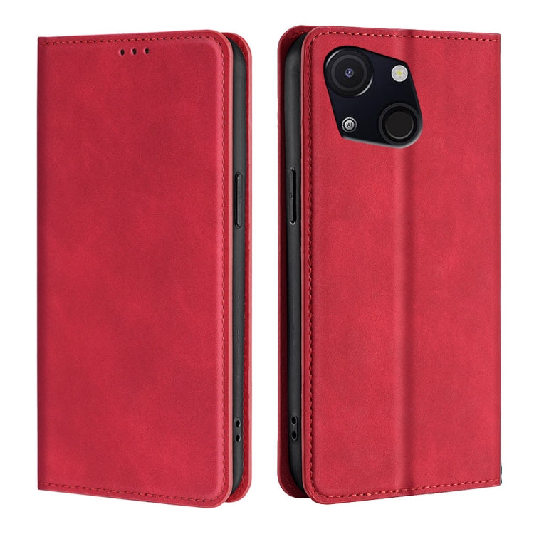 Funda de Cuero Magnética con Tacto de Piel para Itel A50C 4G (Roja)