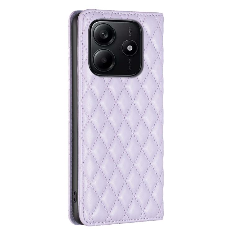 Funda de Cuero Magnética con Tapa Tipo Cartera para Redmi Note 14 4G con Diseño de Diamante (Morado)