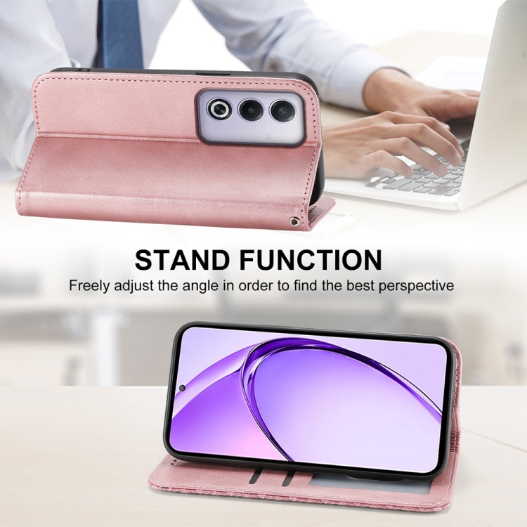 Funda de Cuero Magnética con Textura de Becerro y Cuadrícula Cúbica para Oppo A3 Pro 5G (Oro Rosa)