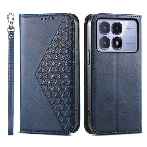 Funda de Cuero Magnética con Textura de Becerro y Cuadrícula Cúbica para Redmi K70 Ultra (Azul)