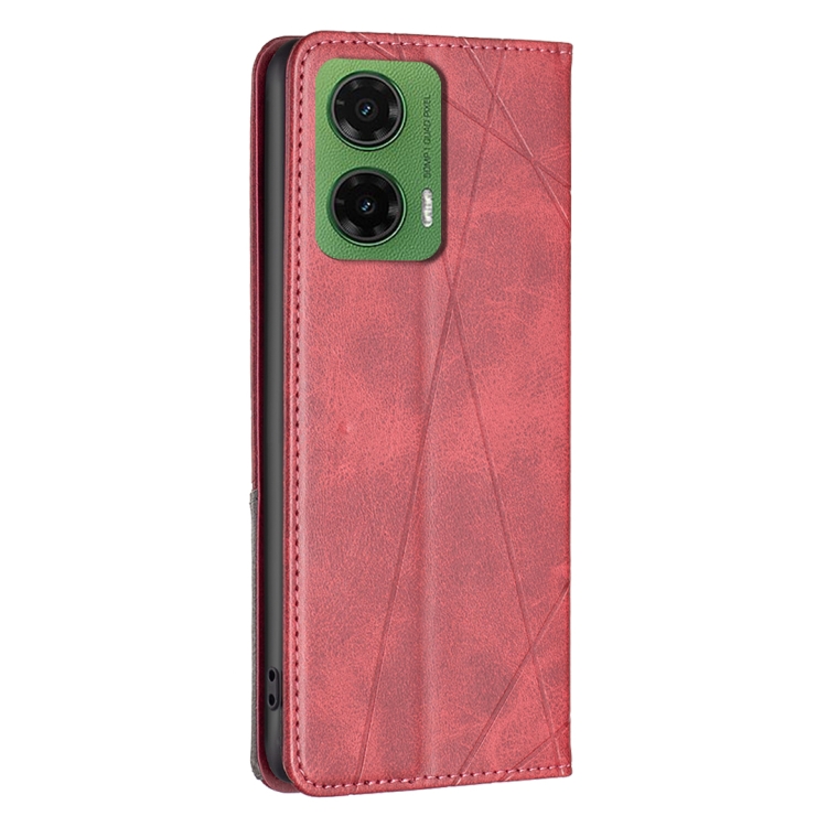 Funda de Cuero Magnética con Textura de Rombos para Motorola Moto G35 (Rojo)