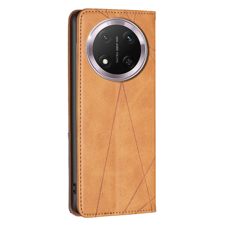 Funda de Cuero Magnética con Textura de Rombos para Honor X9C 5G (Amarillo)