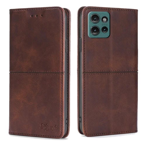 Funda de Cuero Magnética con Textura de Vaca para Motorola Edge 50 5G (Marrón Oscuro)