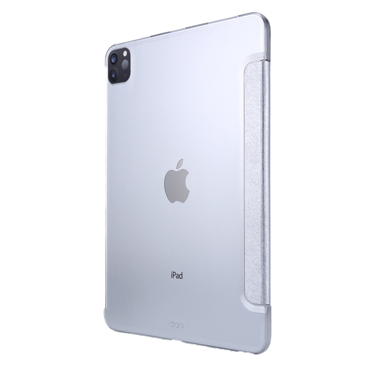 Funda de Cuero Magnética PU Textura Seda con Soporte Tres Plegables y Función Suspensión para iPad Air 2022/2020 10.9 (Plata)