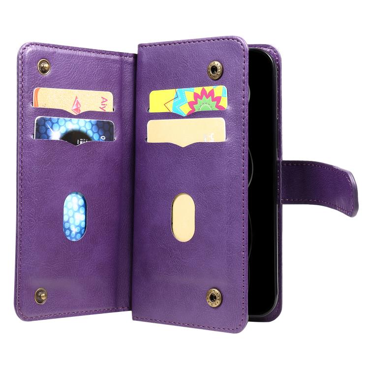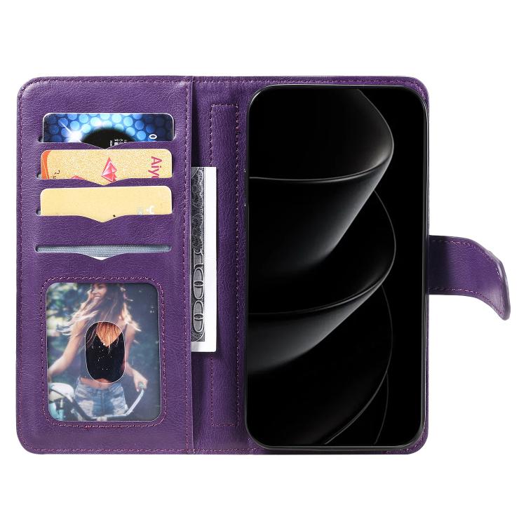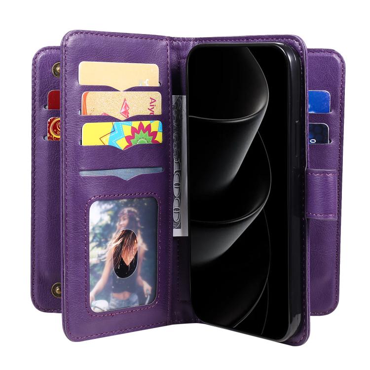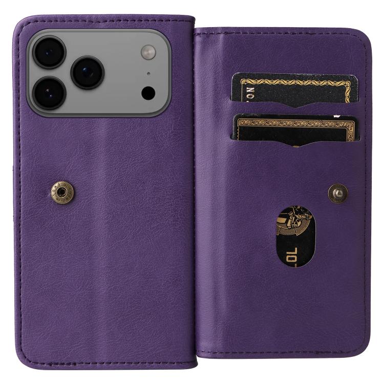 Funda de cuero multifunción tipo billetera con 10 ranuras para tarjetas para iPhone 17 Pro Max (violeta)