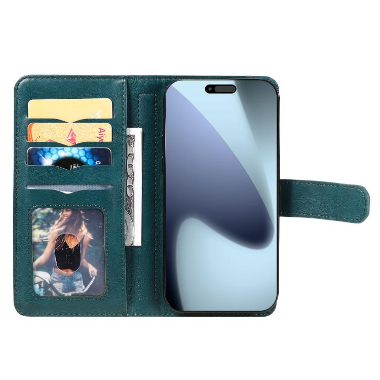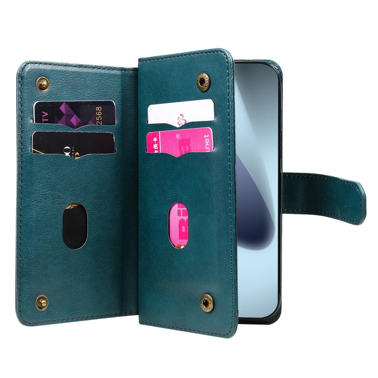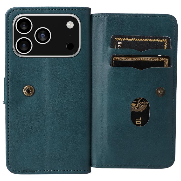 Funda de cuero multifunción tipo billetera para iPhone 17 Pro con 10 ranuras para tarjetas (verde oscuro)