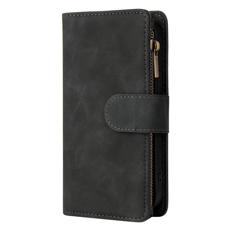 Funda de Cuero Multifuncional iPhone 13 Mini con Ranura para Tarjeta Soporte Billetera Cremallera Marco de Fotos (Negro)