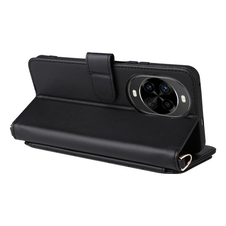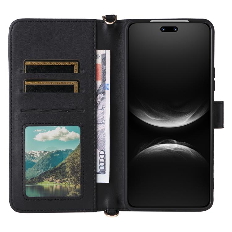 Funda de cuero multifuncional para Huawei Nova 14 Pro 5G con 6 ranuras para tarjetas y correa para la muñeca (negra)