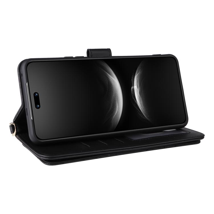 Funda de cuero multifuncional para Huawei nova 14 Ultra 5G con 6 ranuras para tarjetas y correa para la muñeca (negra)