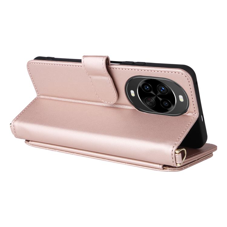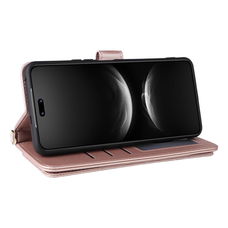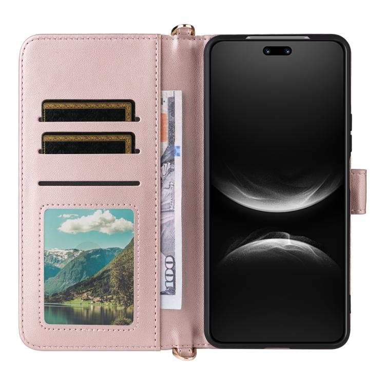 Funda de cuero multifuncional para Huawei nova 14 Ultra 5G con 6 ranuras para tarjetas y correa para la muñeca (rosa)