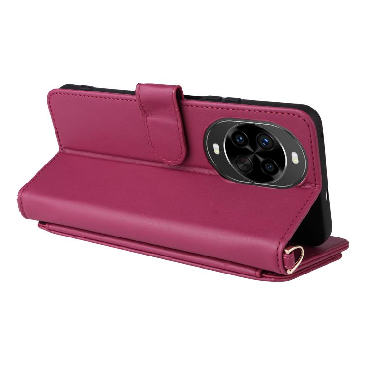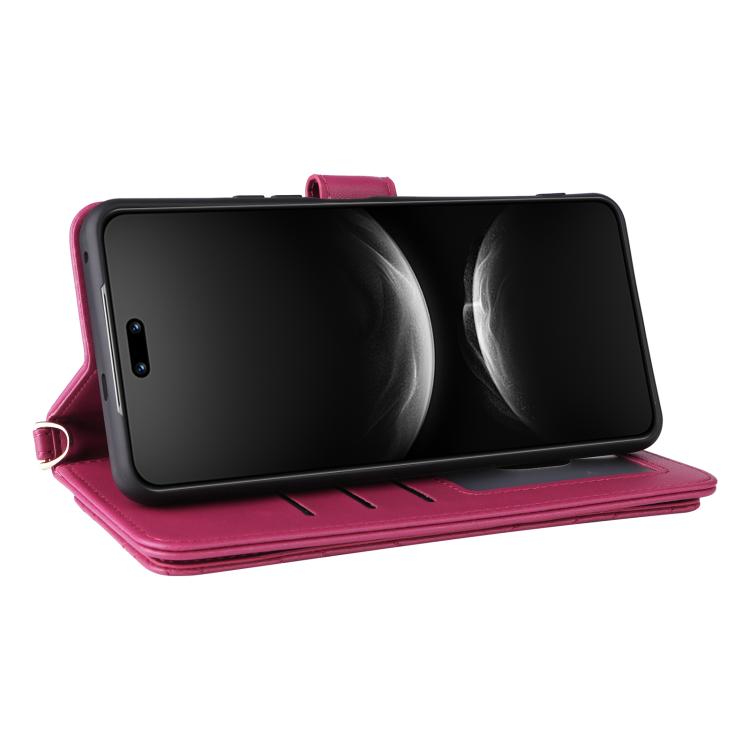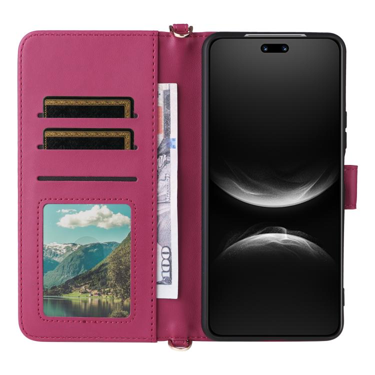 Funda de cuero multifuncional para Huawei nova 14 Ultra 5G con 6 ranuras para tarjetas y correa para la muñeca (rosa)
