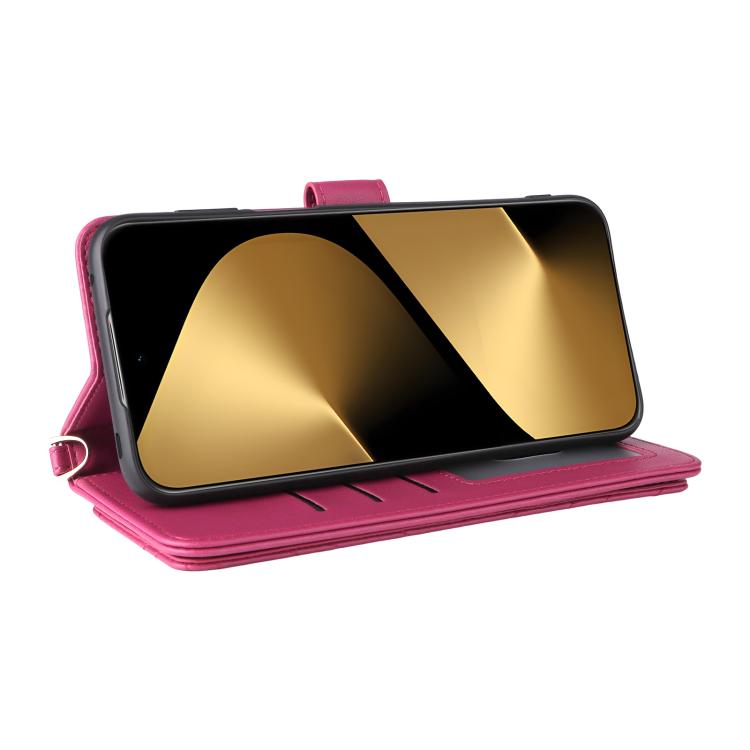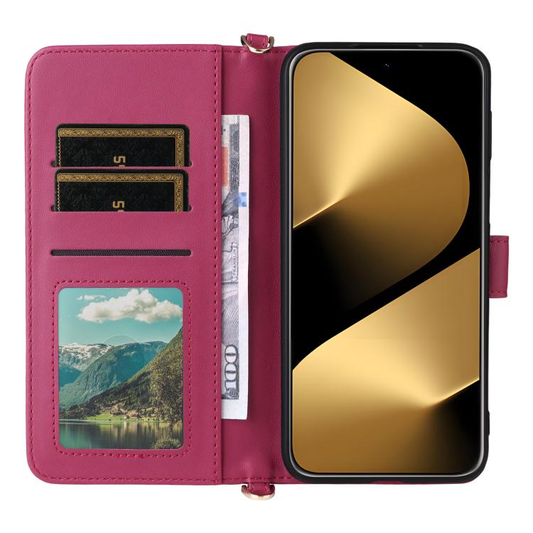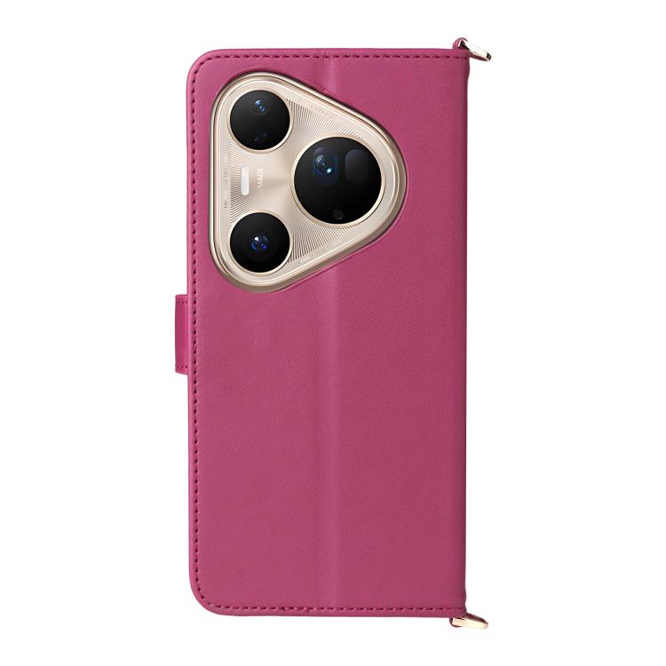 Funda de cuero multifuncional para Huawei Pura 80 Ultra 5G con 6 ranuras para tarjetas y correa para la muñeca (rosa)