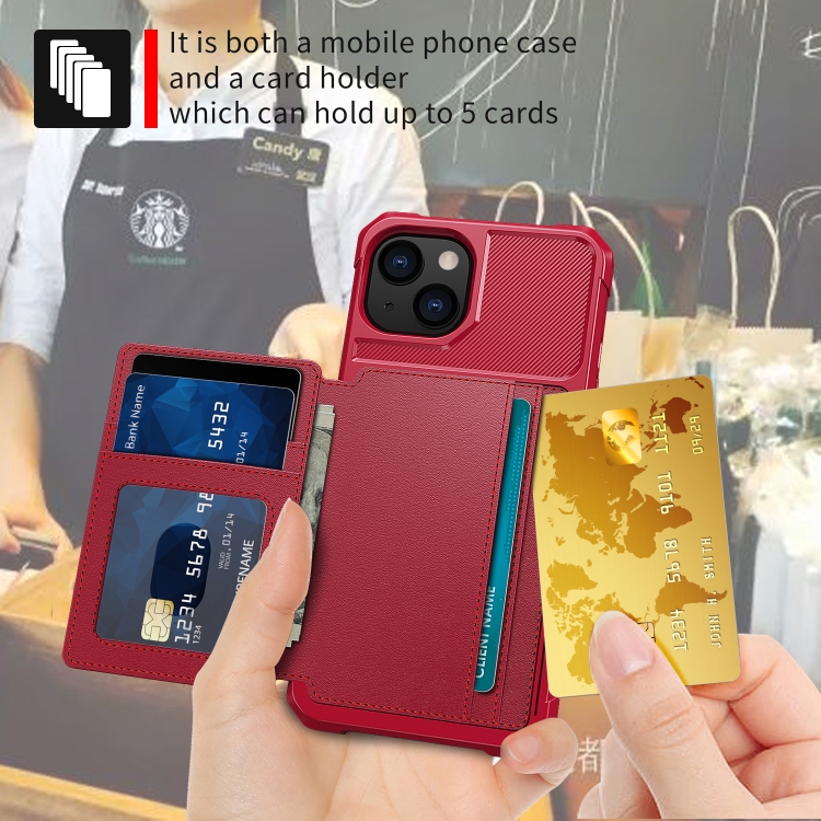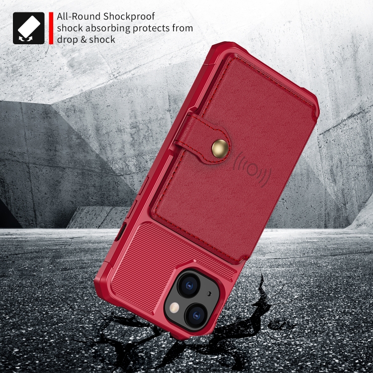 Funda de Cuero para iPhone 13 Mini con Monedero Magnético (Rojo)