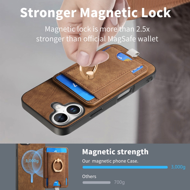 Funda de Cuero para iPhone 16 Plus con Tarjetero Magnético Divisible Estilo Retro (Marrón)