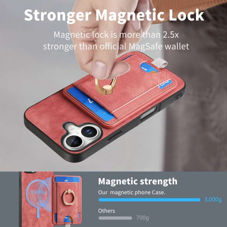 Funda de Cuero para iPhone 16 Plus con Tarjetero Magnético Divisible Estilo Retro (Rosa)