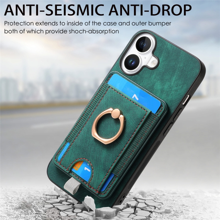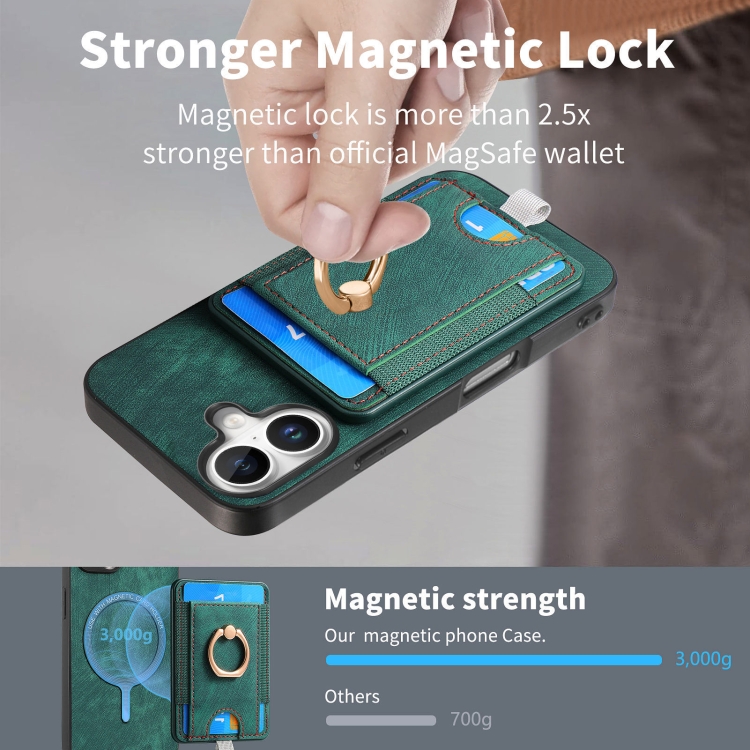 Funda de Cuero para iPhone 16 Plus con Tarjetero Magnético Divisible Estilo Retro (Verde)