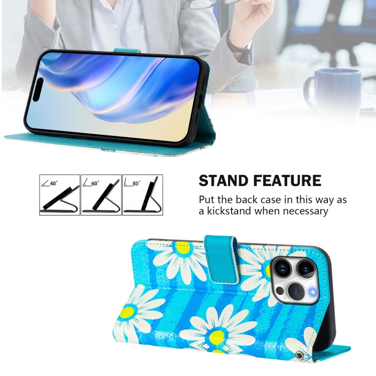 Funda de Cuero para iPhone 16 Pro Max Diseño Dibujo Artístico (Margarita Azul)
