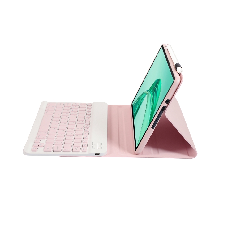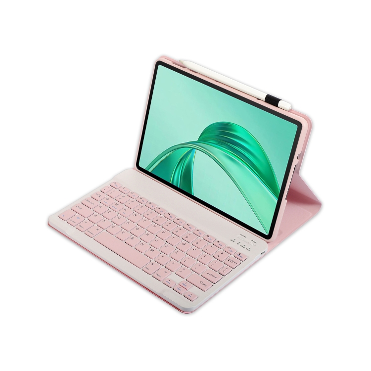 Funda de Cuero con Teclado Bluetooth Desmontable para Honor Pad X8A/X9 (2024) (Rosa y Blanco)