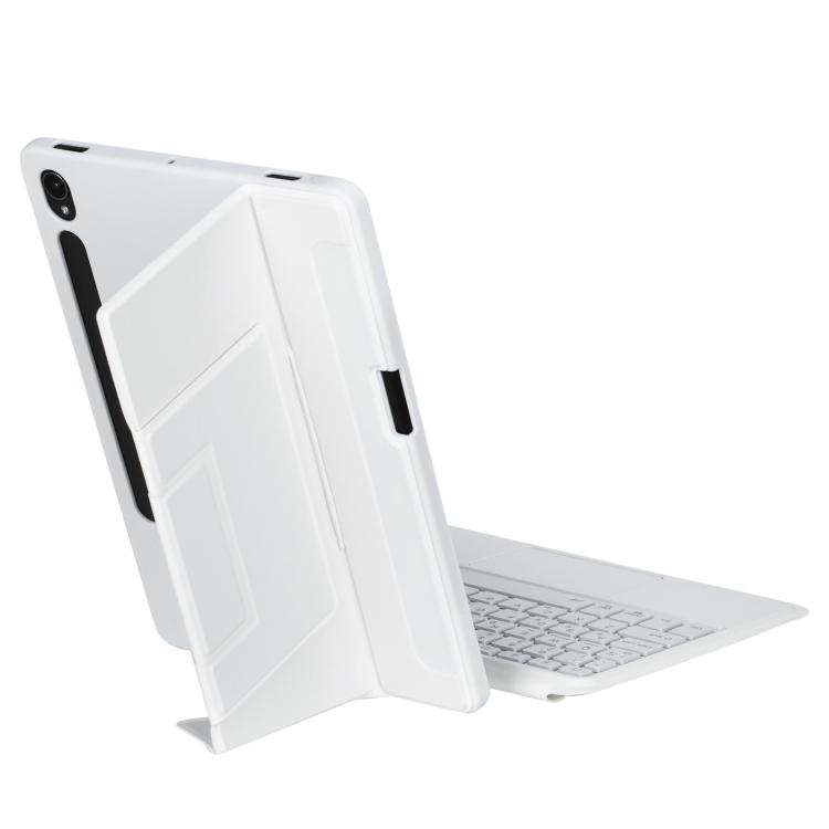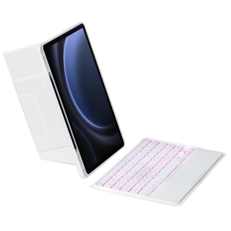 Funda de Cuero para Tableta Samsung Galaxy Tab S9 Fe/S9 con Teclado Retroiluminado Desmontable y Panel Táctil (Blanco)