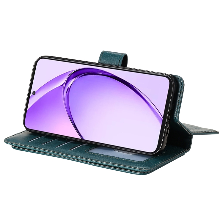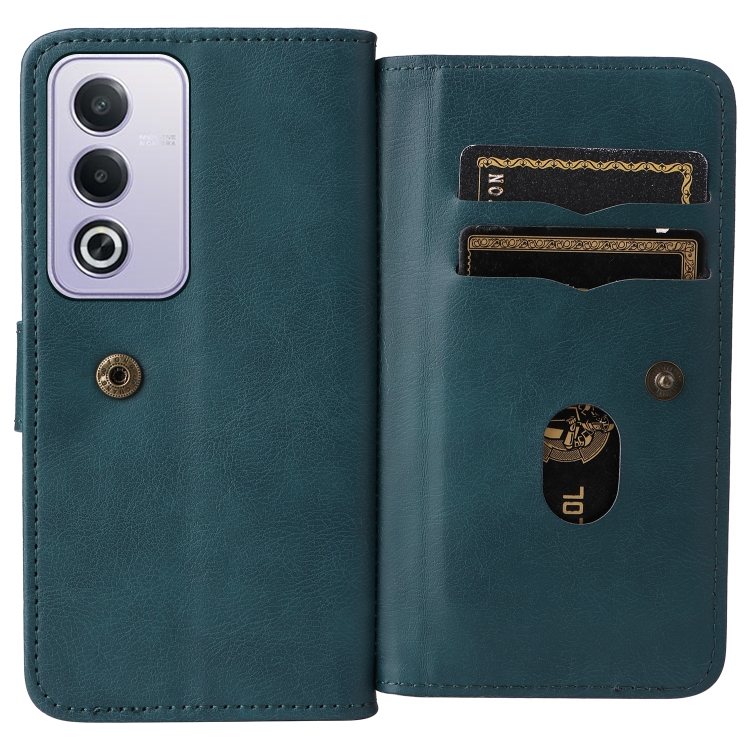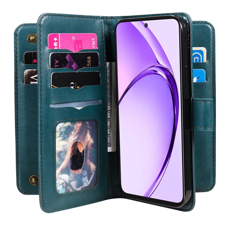 Funda de Cuero para Teléfono con 10 Ranuras para Tarjetas y Billetera Multifunción para Oppo A3 Pro 5G/A3 Pro India (Verde Oscuro)