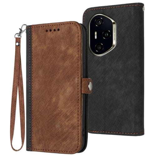 Funda de Cuero para Honor 300 Pro y 300 Ultra con Correa Plegable y Hebilla Lateral Doble (Marrón)