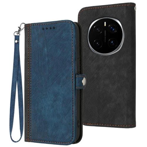 Funda de Cuero para Honor Magic7 Pro con Correa y Hebilla Lateral Doble Plegable (Azul Real)