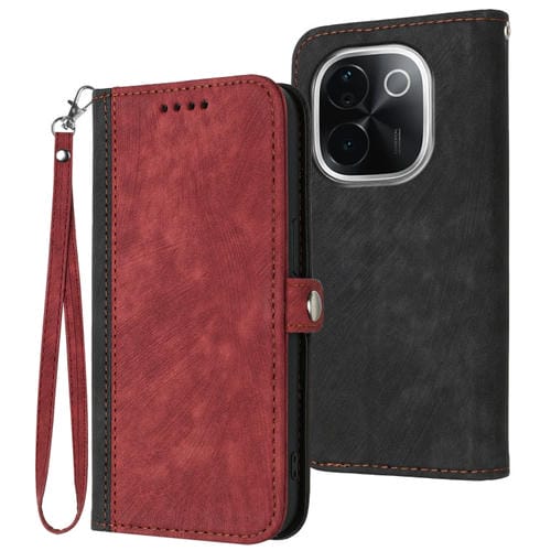 Funda de Cuero para Teléfono con Correa de Mano y Hebilla Lateral Doble Plegable para Vivo Iqoo Z9S Pro/T3 Pro 5G (Rojo)