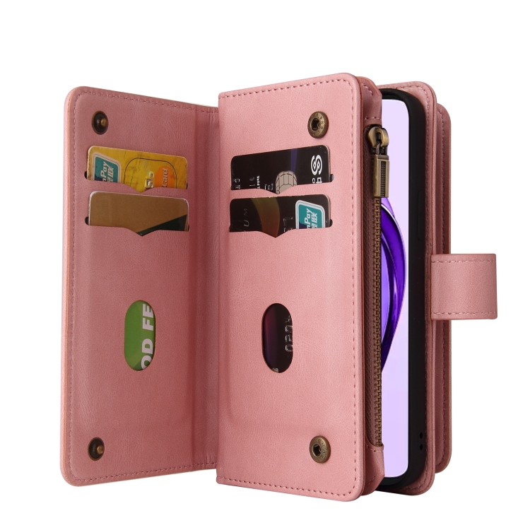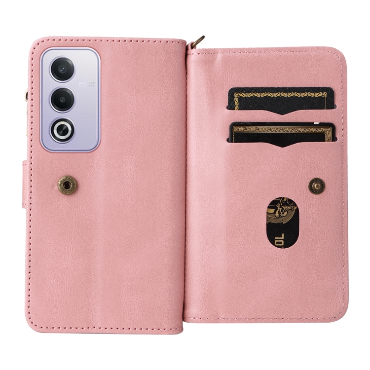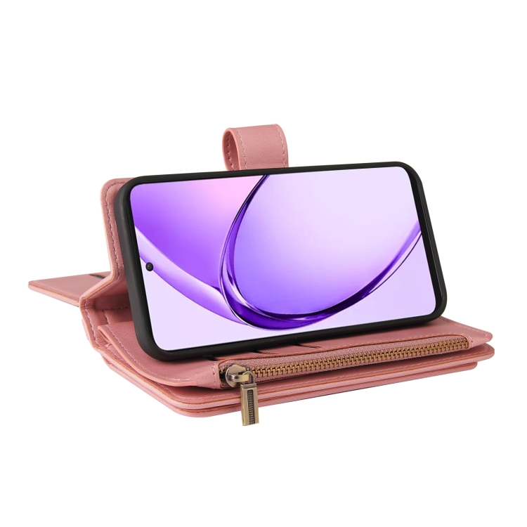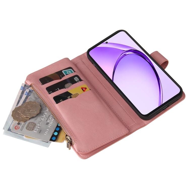 Funda de Cuero para Teléfono con Cremallera y Ranuras para Múltiples Tarjetas para Oppo A3 Pro 5G/A3 Pro India (Rosa)