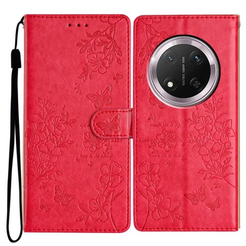 Funda de Cuero para Honor X9C con Mariposas y Flores (Roja)