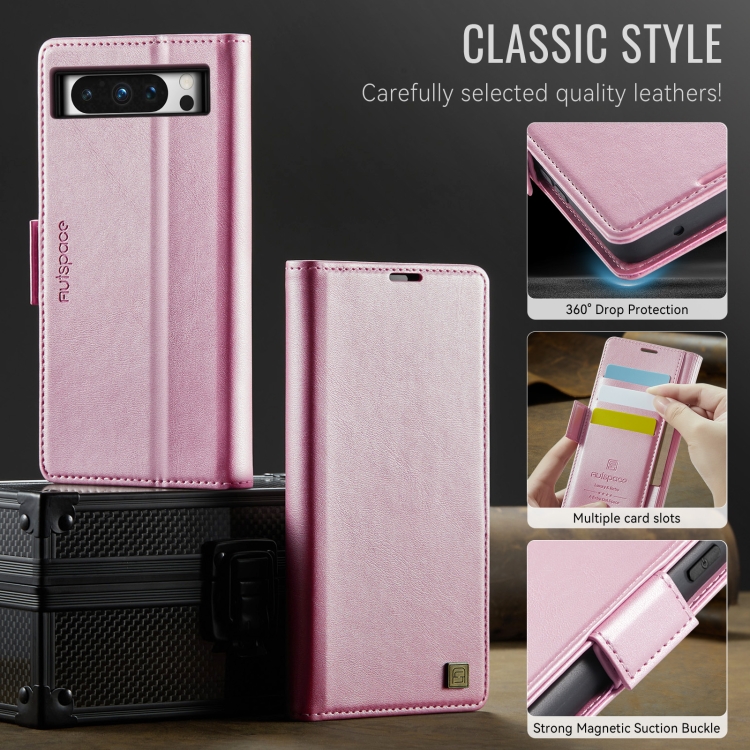 Funda de Cuero Autspace A11 para Google Pixel 8 Pro con Hebilla Lateral Magsafe y Rfid Magnética (Oro Rosa)