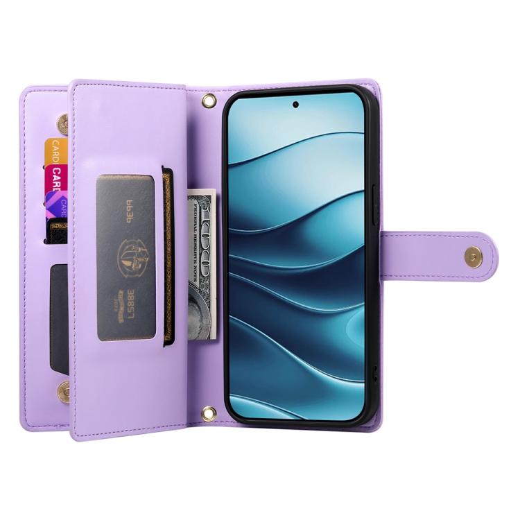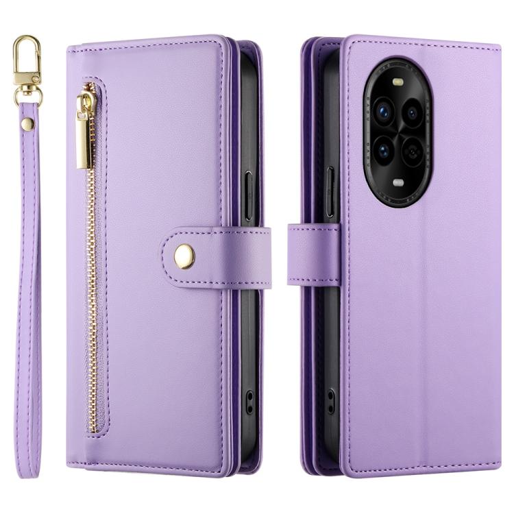 Funda de Cuero para Huawei Nova 13 Pro con 9 Ranuras para Tarjetas y Cremallera (Morado)